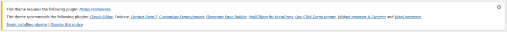 Step 1: After activating the theme, in the notification message at the top of the admin page, click the Begin Installing Plugins link.