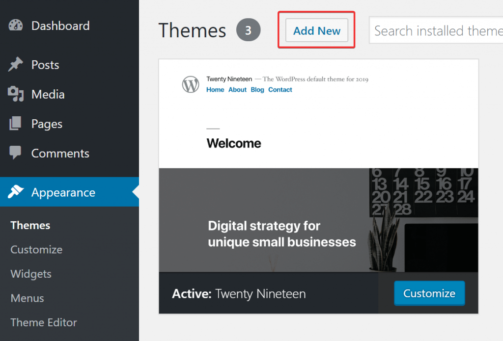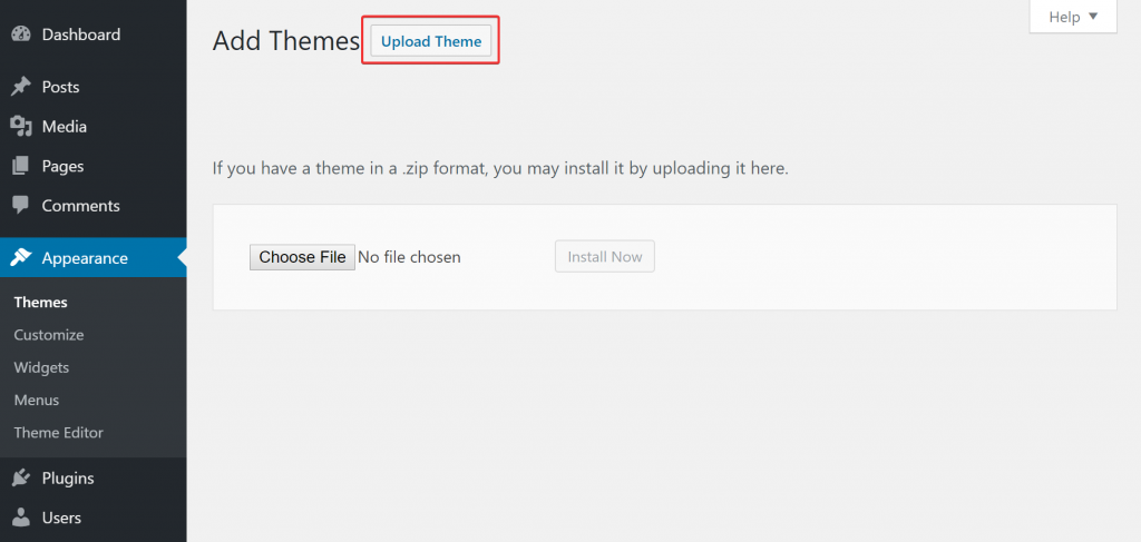- Step 2: Click the Add New button at the top of the page, then click the Upload Theme button on the next page.